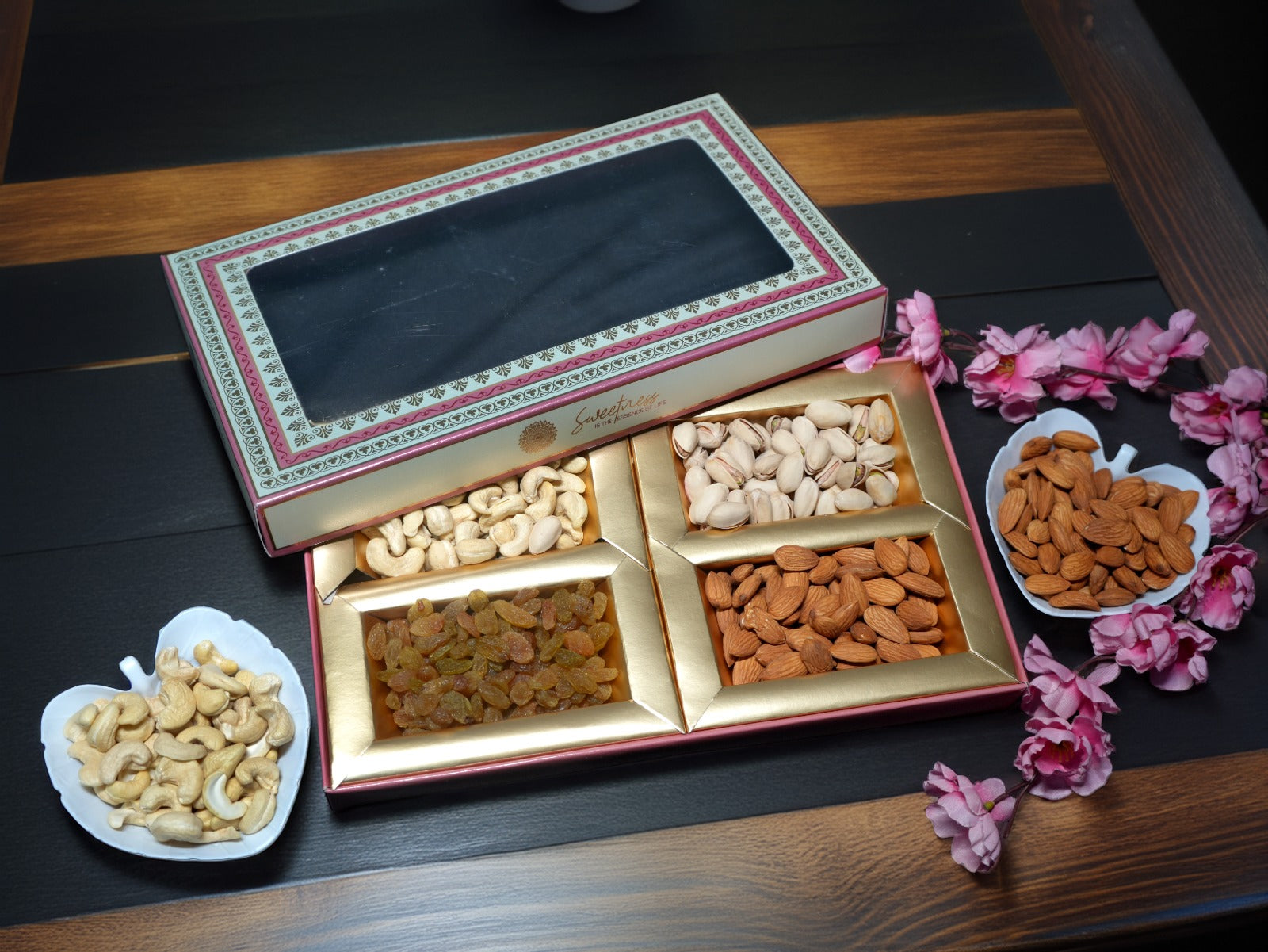 A healthy way to convey good wishes and promote well-being, as dry fruits are rich in vitamins, minerals, and dietary fiber.