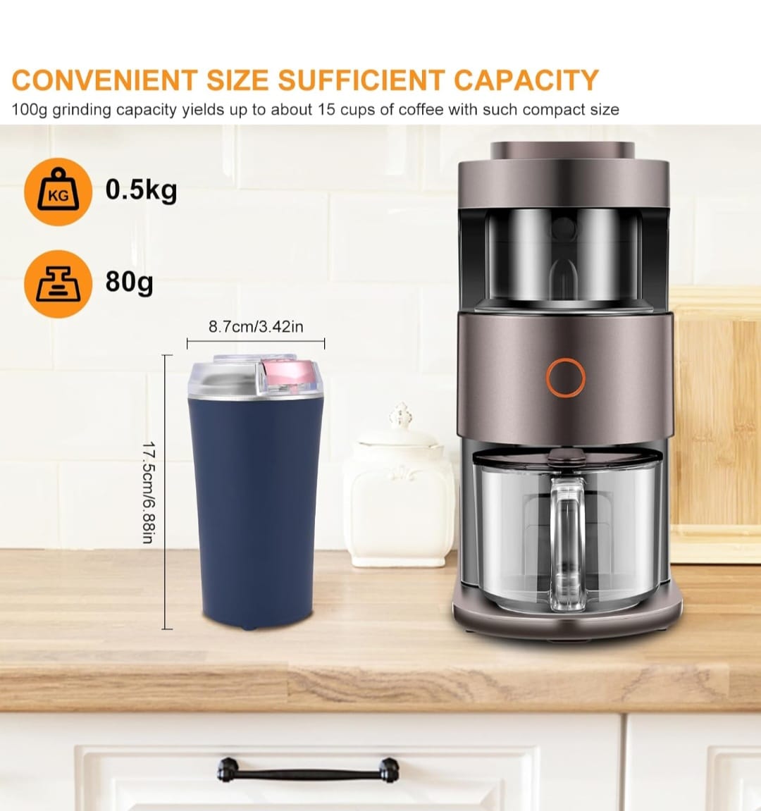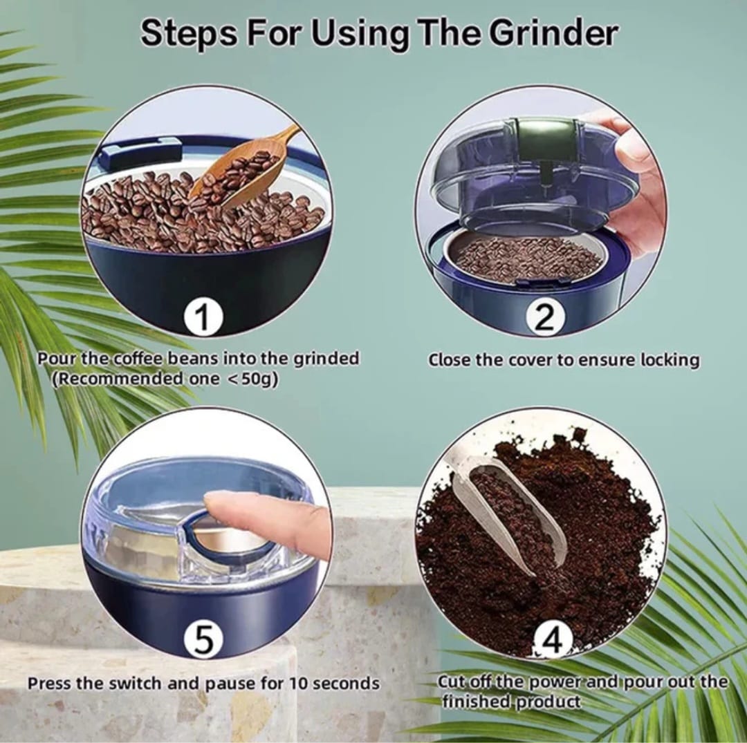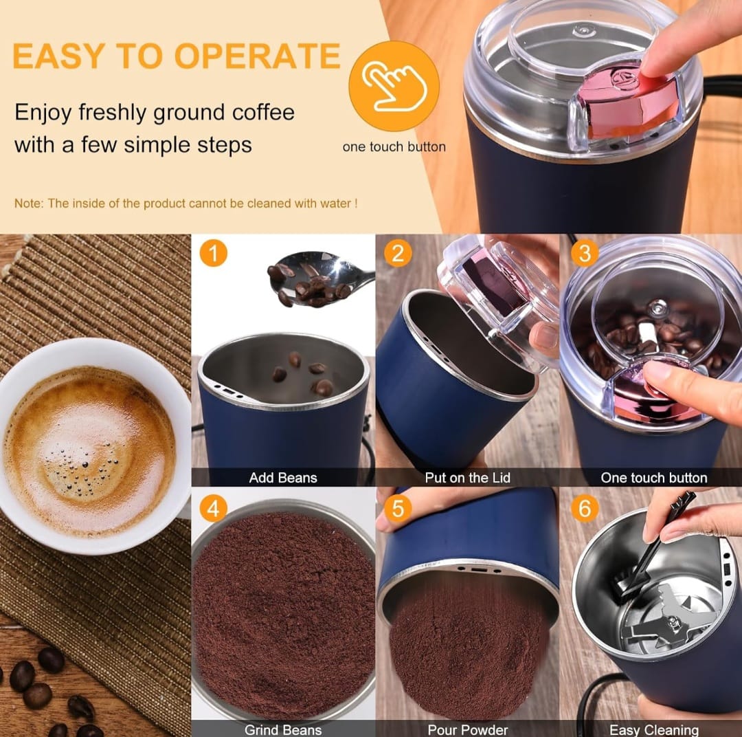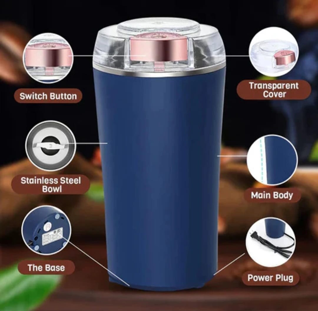 Enjoy the rich aroma and full flavor of freshly ground coffee beans with our powerful Electric Coffee Grinder. Designed for convenience and versatility, this compact grinder is perfect for coffee lovers who appreciate a fresh brew at home or on the go. With one-touch operation and a sleek design, it delivers effortless grinding in seconds.